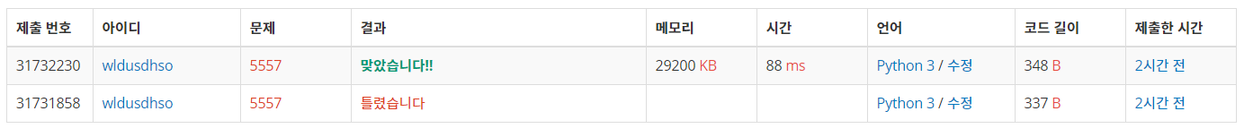 | [백준 2631번] 줄세우기 (python) (0) | 2021.08.02 |