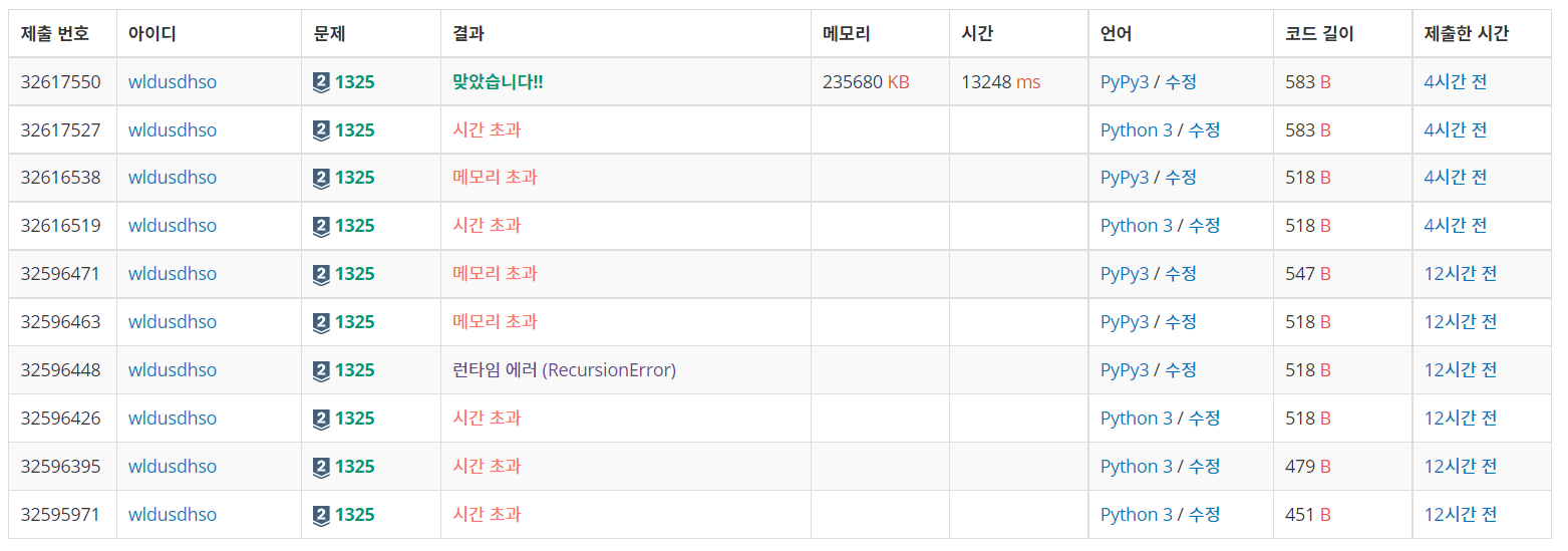 (graph 2일차) 초과때문에 너무 힘들었다.......................... 재귀로 dfs 구현해서 풀면 안된다고 한다. 정확히는 모르겠지만 시간초과가 아니어도 파이썬 최대 깊이를 초과한다는 것 같다.