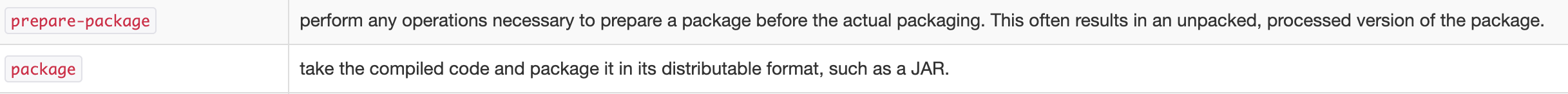 5. pacakge : 배포를 위한 패키지(jar, war,,)를 만드는 단계
