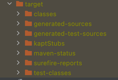 - target/generated-sources : 코드 생성 라이브러리 혹은 annotation 프로세서에 의해 컴파일 타임에 생성되는 코드가 위치하는 디렉토리